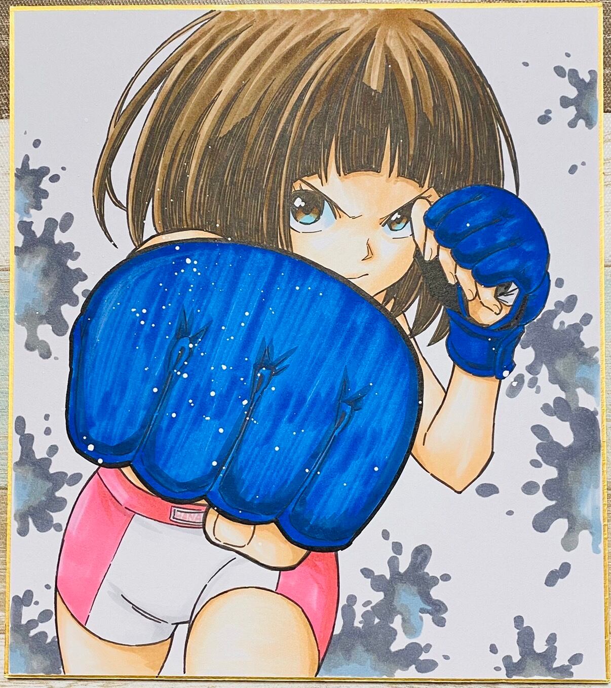 『ハナカク』フルカラー直筆サイン色紙【格闘モード花夏】